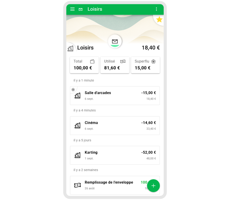 Visualisez d’un coup d’œil vos enveloppes et les sommes restantes — pour garder le contrôle, facilement.